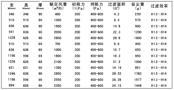 五、“梓凈”DOP液槽密封式高效過濾器技術參數: