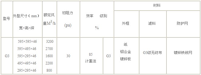G3級初效過濾器技術參數(shù):