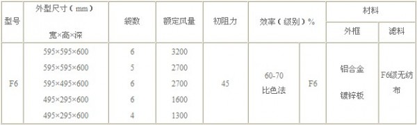 F6級袋式中效過濾器標準技術參數