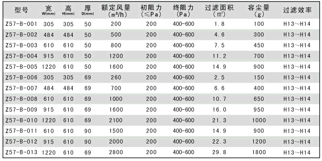 高效過濾器規(guī)格尺寸及廠家:
