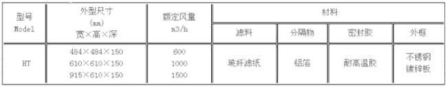 250℃耐高溫高效過濾器型號尺寸及其它參數