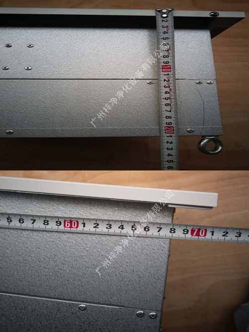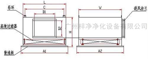 A、高效送風口靜壓箱體,材質(zhì)有冷軋鋼板(A3板)與不銹鋼板。箱體是用作吊在天花上與四周庫板相結合密封,也是高效送風口四件套主體。